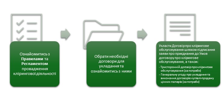 - укласти нові договори про клірингове обслуговування (шляхом приєднання до Умов договору про клірингове обслуговування);